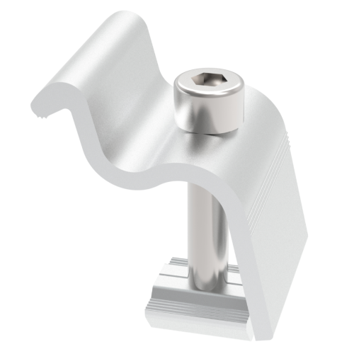 Clema pentru prinderea panourilor fotovoltaice. Se foloseste la prinderea unei singure rame, la exteriorul panourilor de la capatul unui sir.