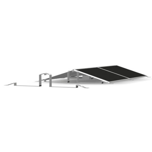 Кріпильна конструкція 2 x 8 панелей схід-захід, нахил 18°, на прямому даху