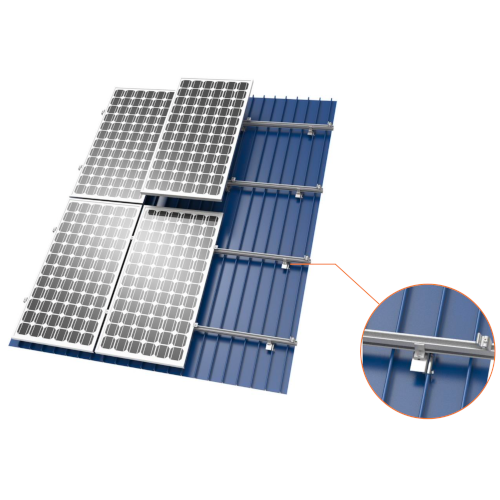 Повна кріпильна конструкція для 8 фотоелектричних панелей (1 ряд з 8 панелей шириною 1150 мм, розміщених вертикально) на профнастилі.